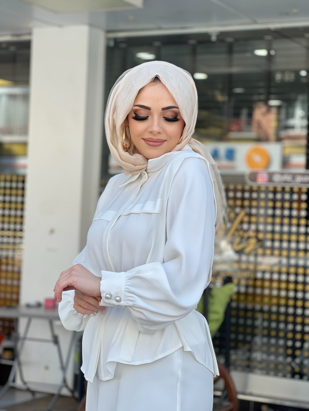 FTZ ŞİFON ETEKLİ TAKIM Ekru