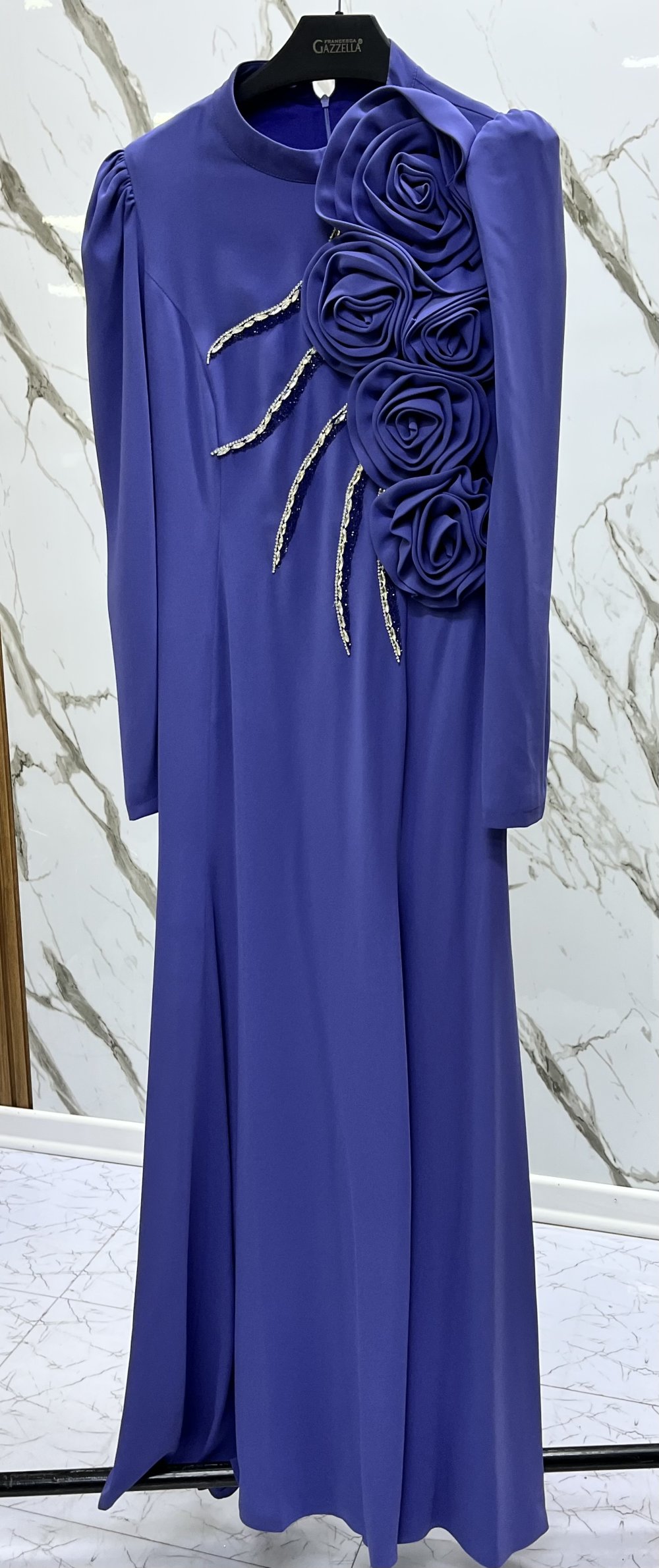 GAZZELLA GÜL BROŞLU TAŞ İŞLEMELİ ABİYE Mavi