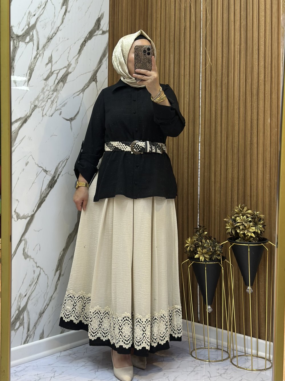 GAZZELLA KETEN ETEKLİ TAKIM Siyah