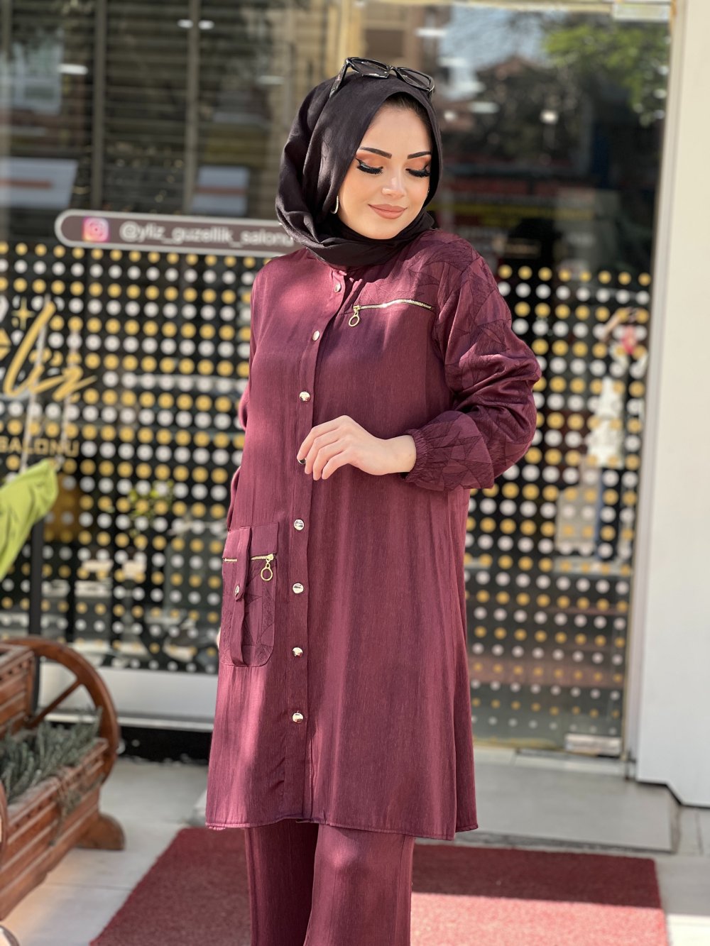 İPEK TENSEL PANTOLONLU TAKIM Bordo