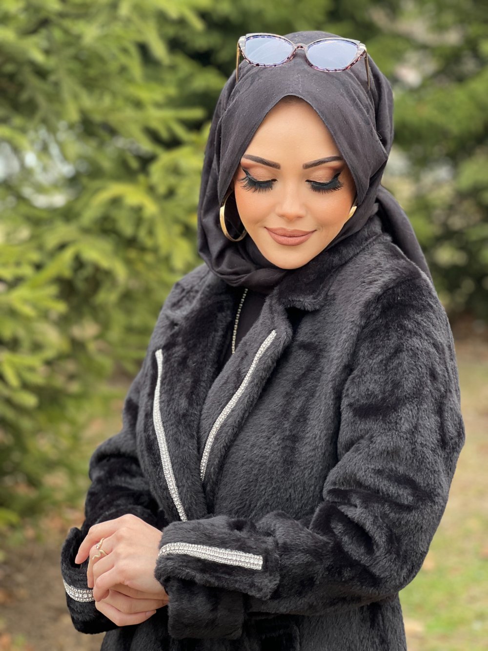 TAŞ DETAYLI ŞIK ANGORA KABAN Siyah