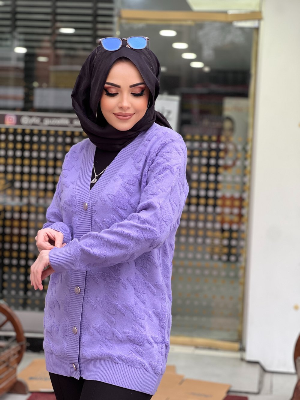 TIĞ TRİKO KAZAYAĞI DESENLİ HIRKA Mor