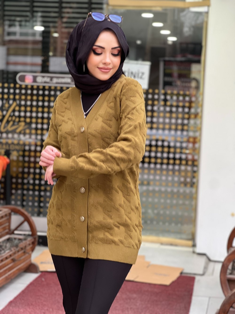 TIĞ TRİKO KAZAYAĞI DESENLİ HIRKA Yağ Yeşili