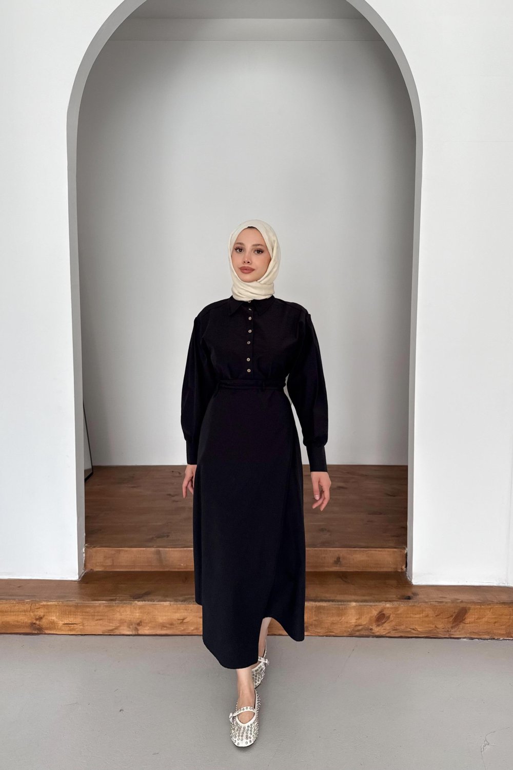 Verev bağlamalı kuşaklı tasarım etekli takım Siyah